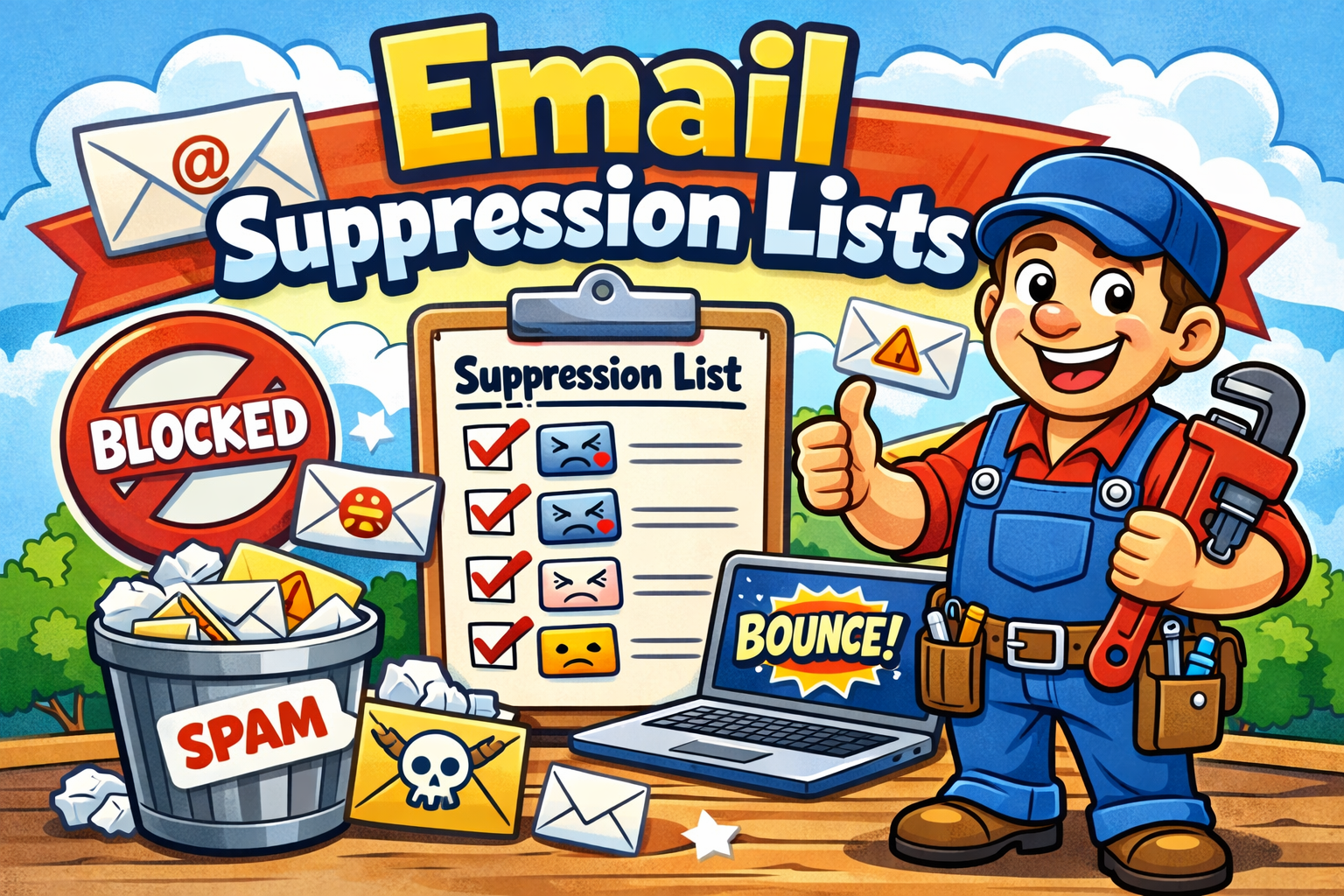 An email suppression list is basically a bunch of email addresses that your system will never send marketing emails to again. It includes folks who unsubscribed, people who marked your stuff as spam, addresses that bounce every time, and even the random invalid emails that probably belong to someone named “asdf123”.